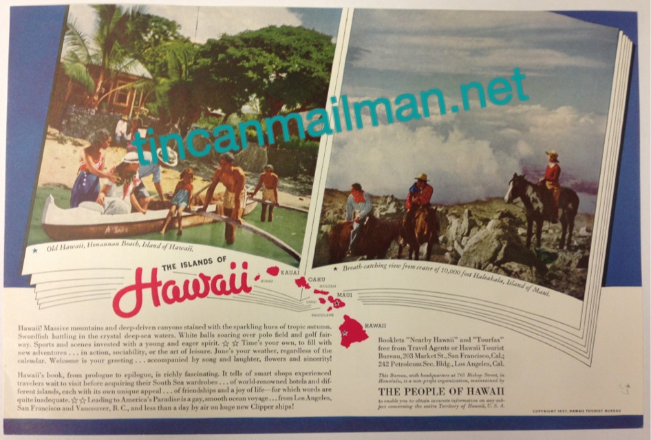 | AD62115 1937 Hawaii Tourist Bureau 6 5/8" x 10" (chromed)$20 |