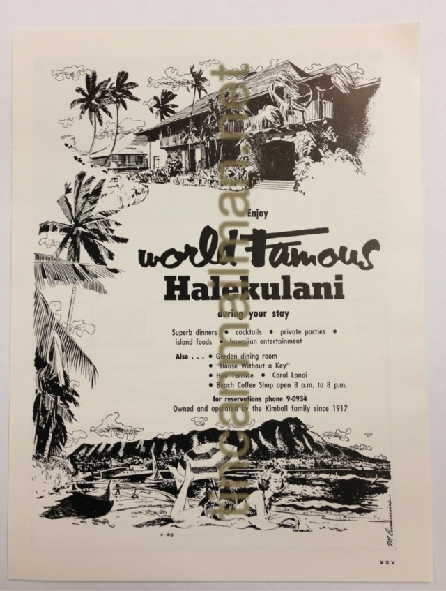 | AD62806 1955-56 11 1/4" x 8 1/2" Halekulani Artist M. Cummins $29 |