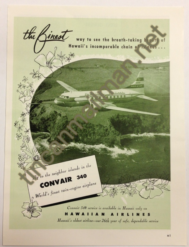 | AD62802 1955-56 11 1/4" x 8 1/2" Hawaiian Airlines $25 |