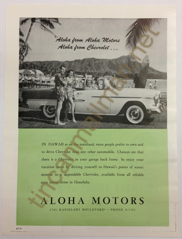| AD62804 1955-56 11 1/4" x 8 1/2" Aloha Motors Rare Hawaii car advertisement $40 |