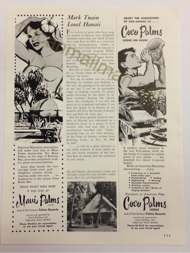 | AD62808 1955-1956 11 1/4" x 8 1/2" (page) Maui Palms Wahine ad w/ Coco Palms ad. Artist Donn Allison (both) $35 |