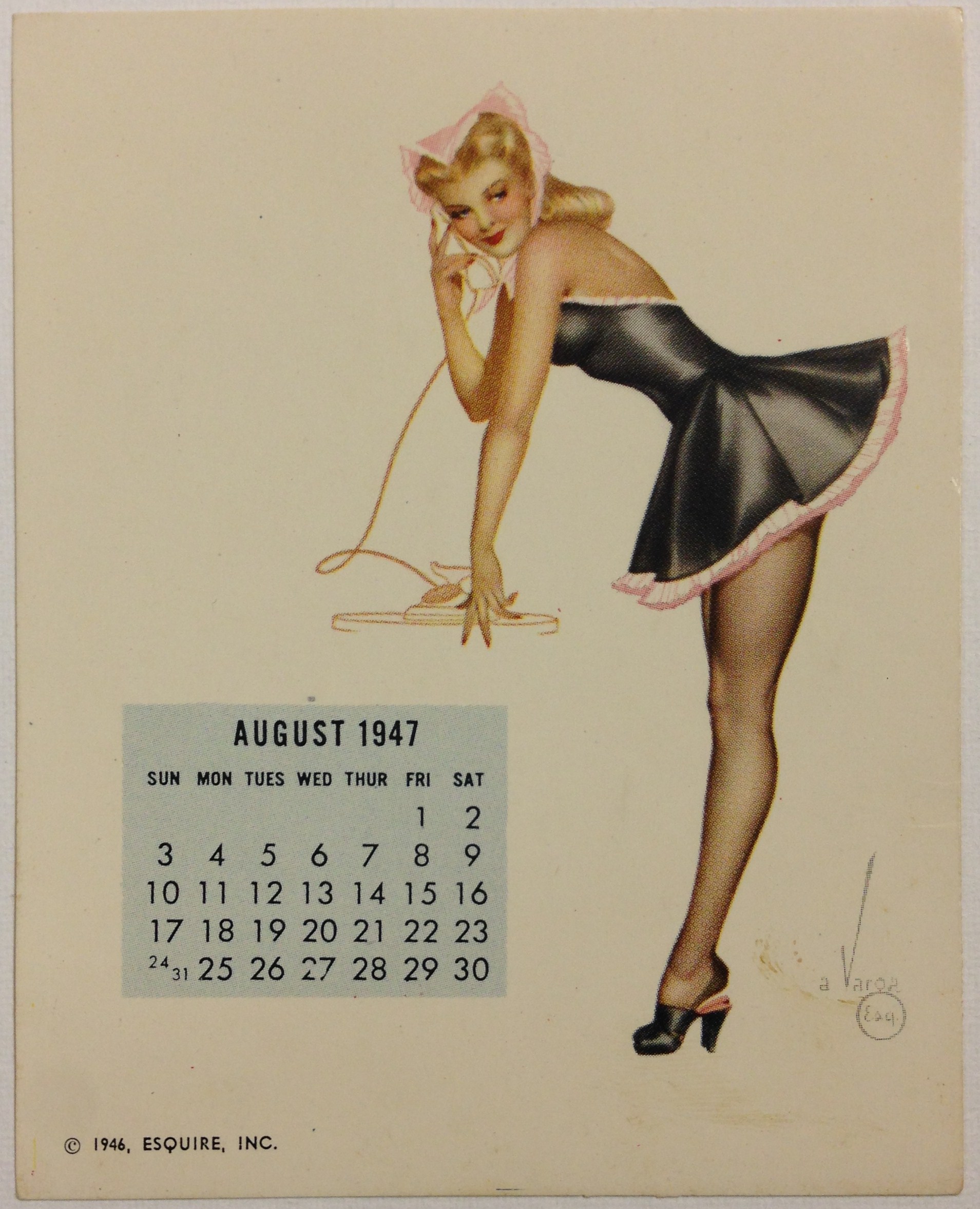 | August 1947 Small Desk Calendar Pin-Up 3 3/8" x 4 1/4" $25 |